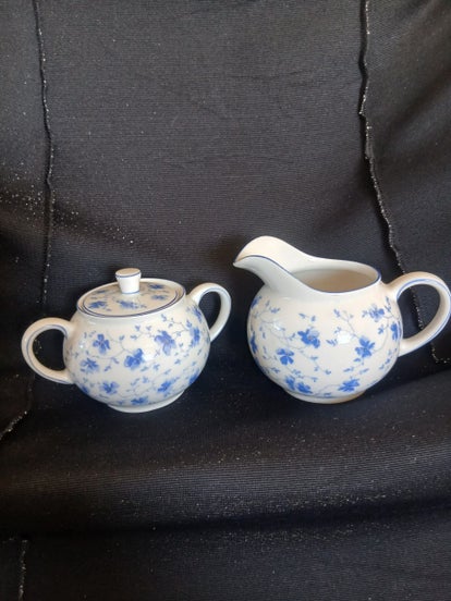 Vintage Arzberg Germany Blue Flower Cream & Sugar Blue Trim. Id marks and numbers are it the pictures