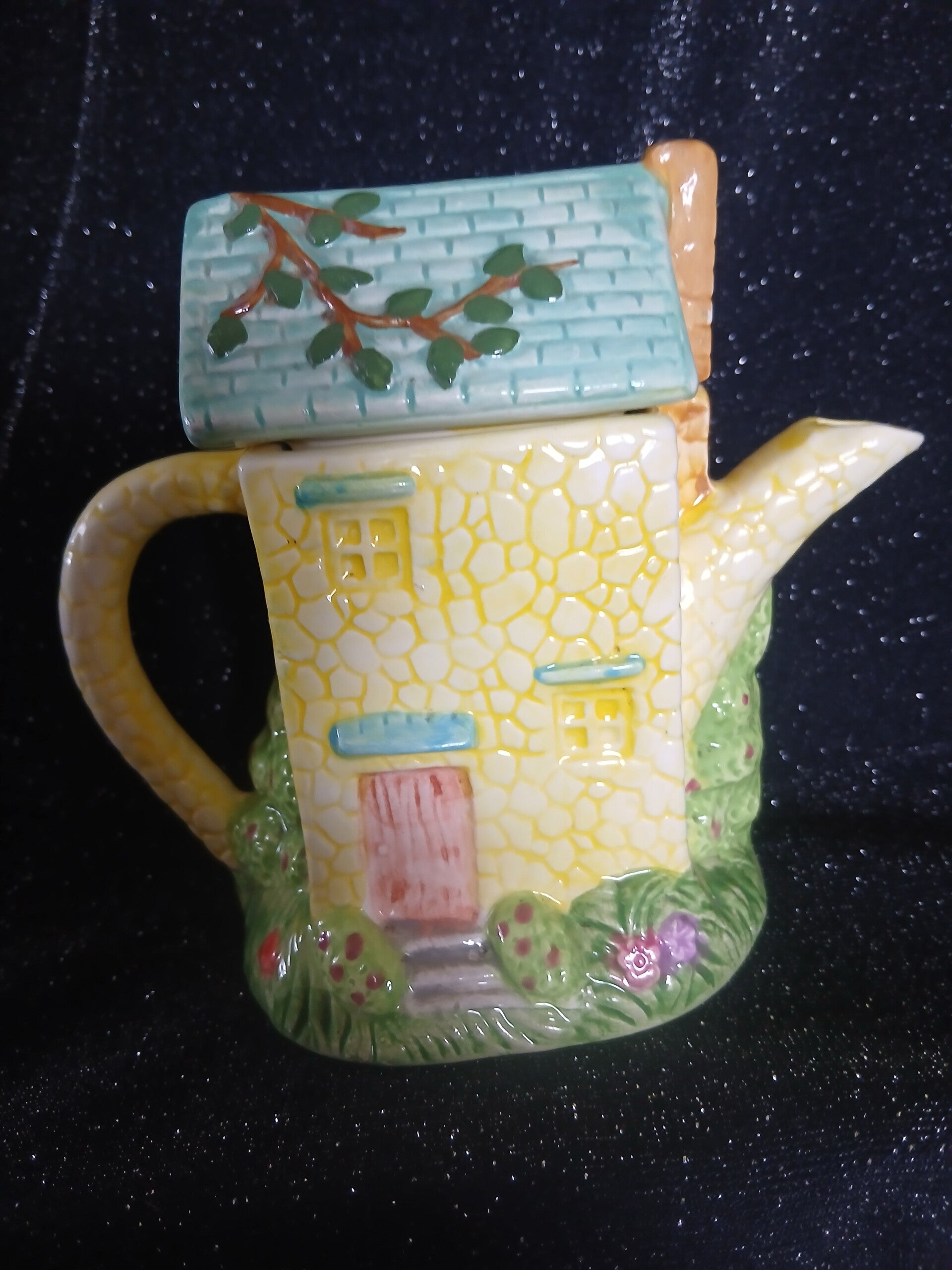 This lovely little teapot is ornament only . Would be lovely little show piece in a little cottage. H 13.5cm w 10cm D 10cm