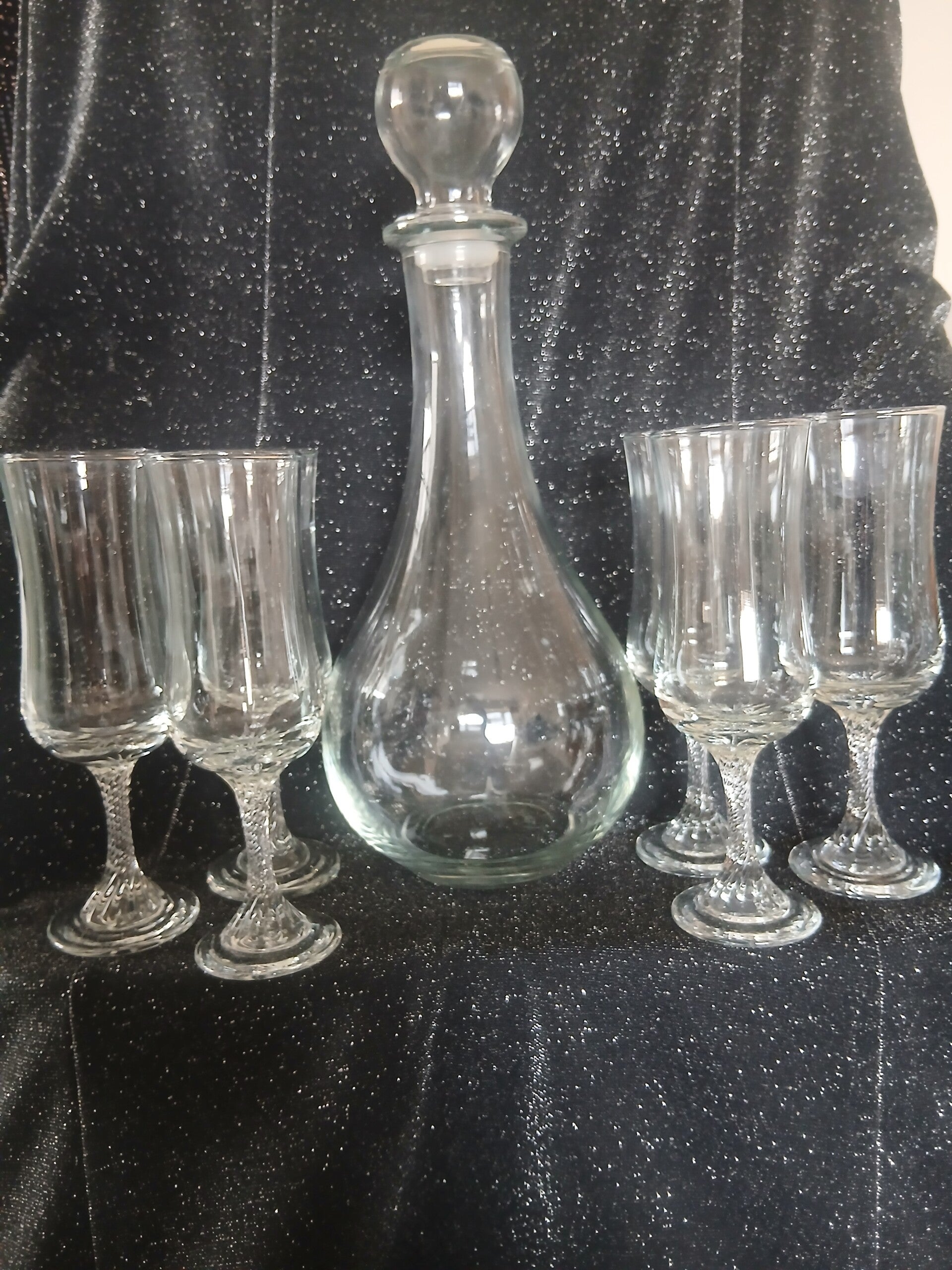 Italian wine decanter 1.5ltr 6x twisted glasses which hold 100m