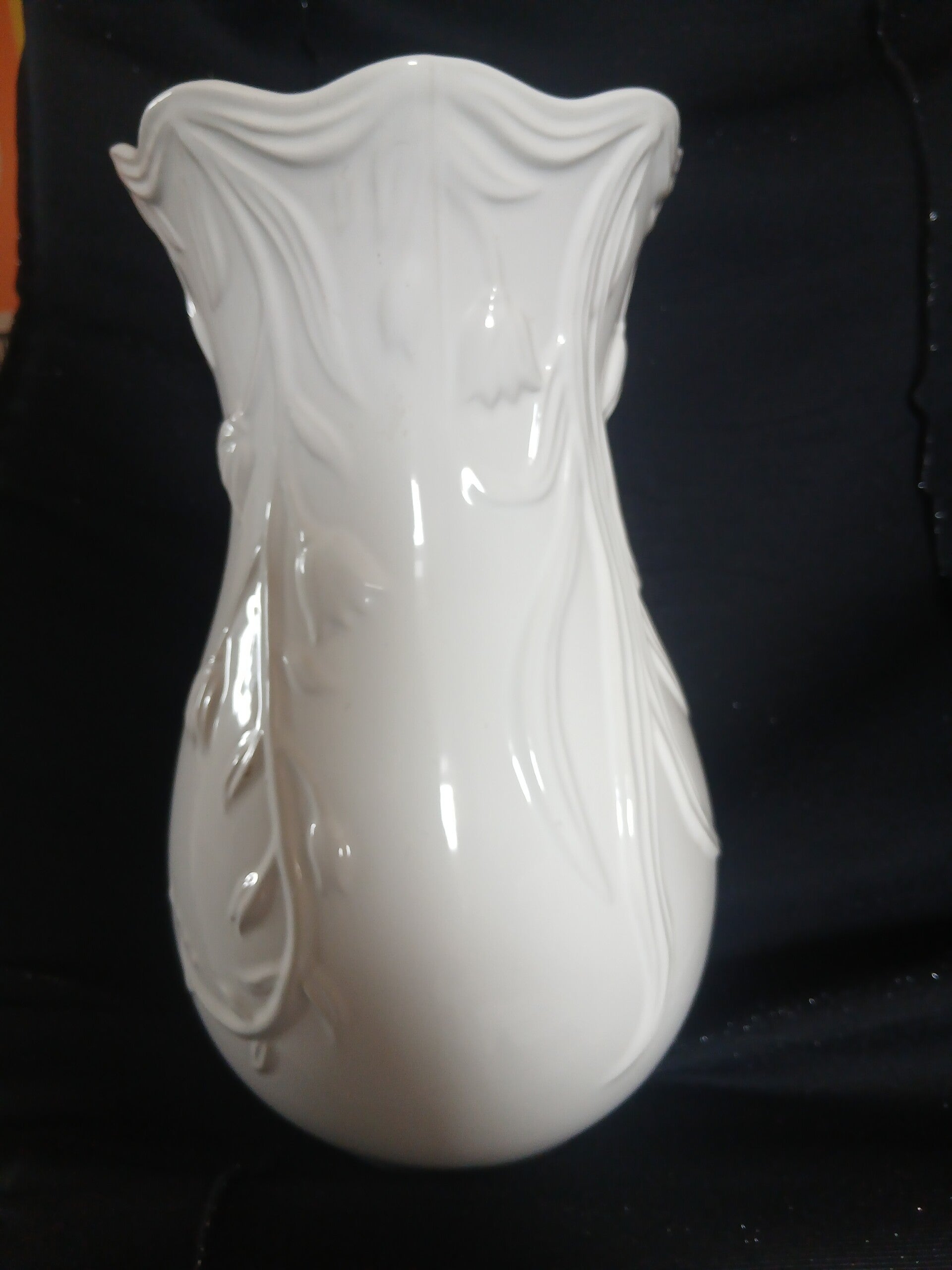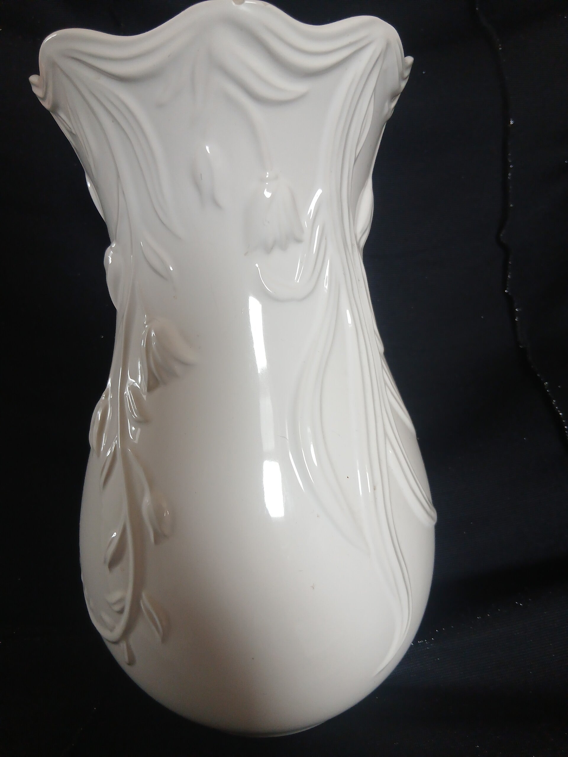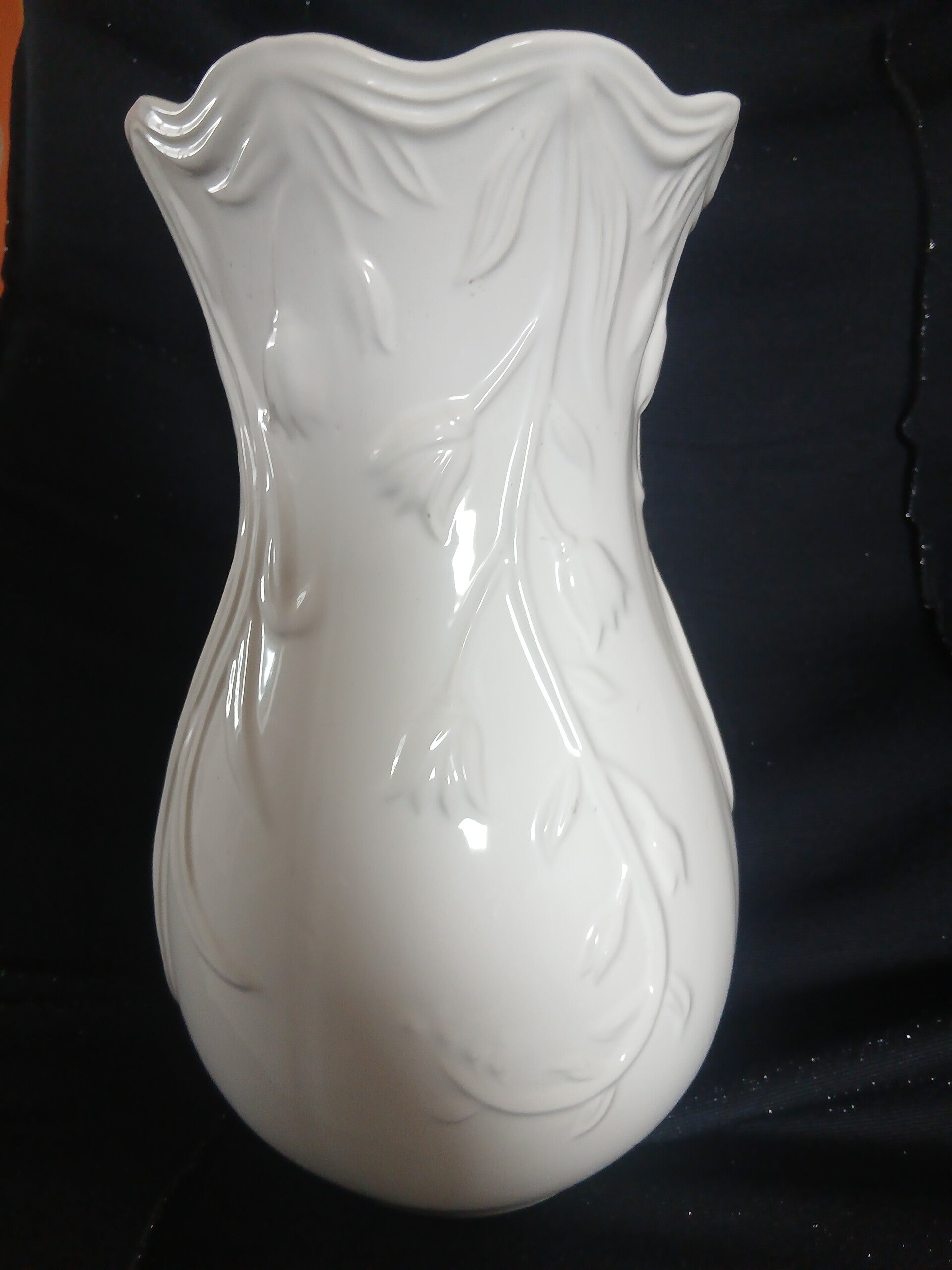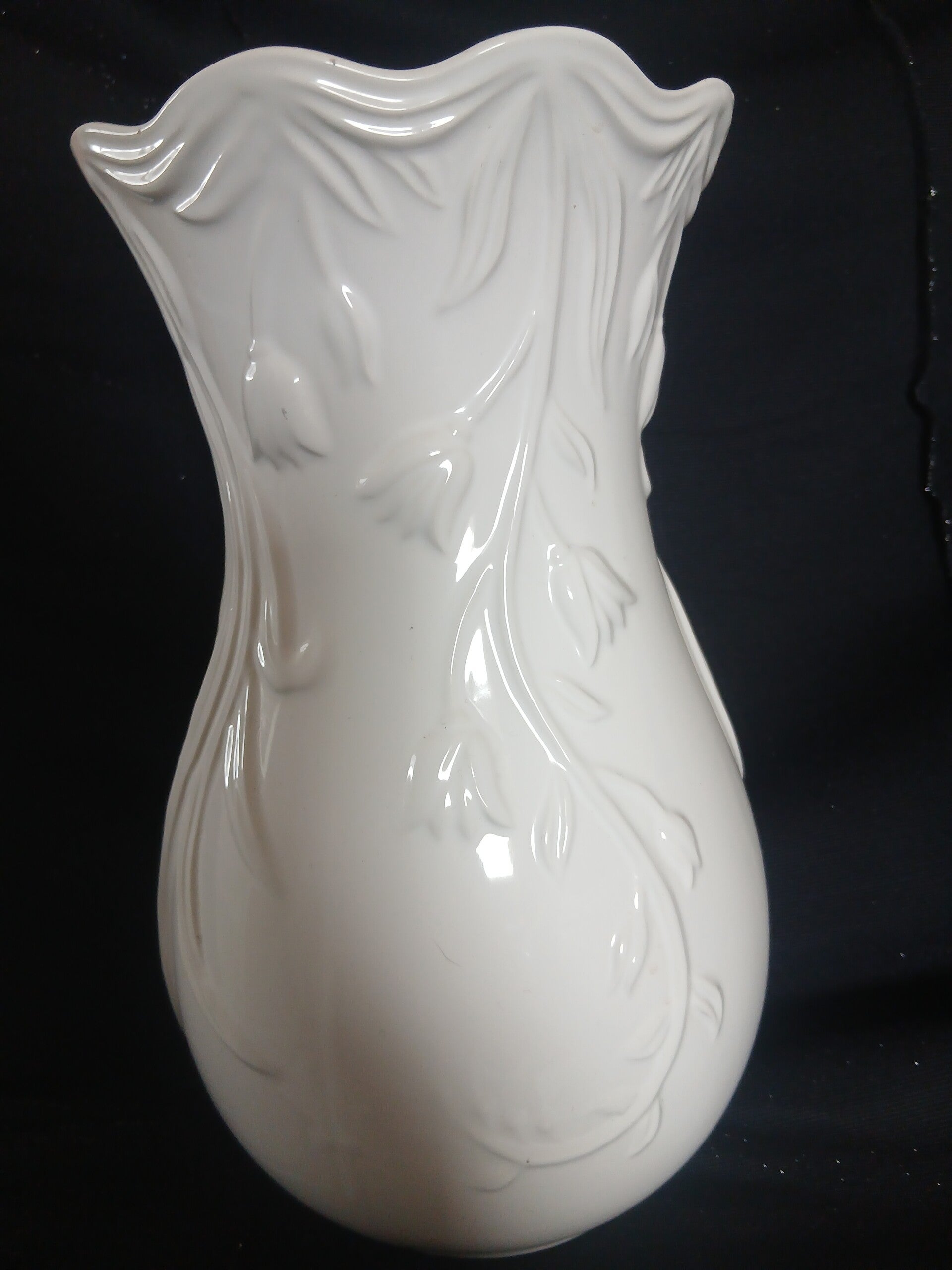 BEAUTIFUL VASE VIOLET VASE IN WHITE PORTUGAL CERAMIC WITH STAMP ON BASE