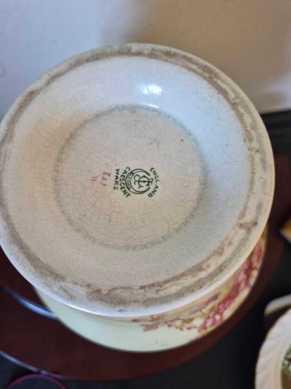 Antique crescent ware buscuit jar . Sadly missing lid. But ideal for a vase or something else